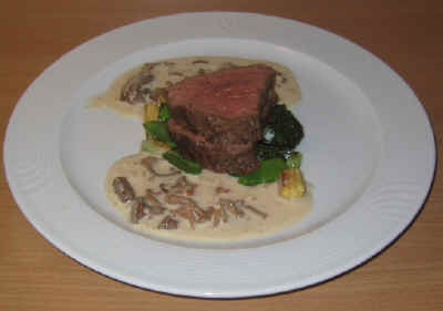 Skär upp filén och servera med sås och rot-fruktstårta samt grönsallad.